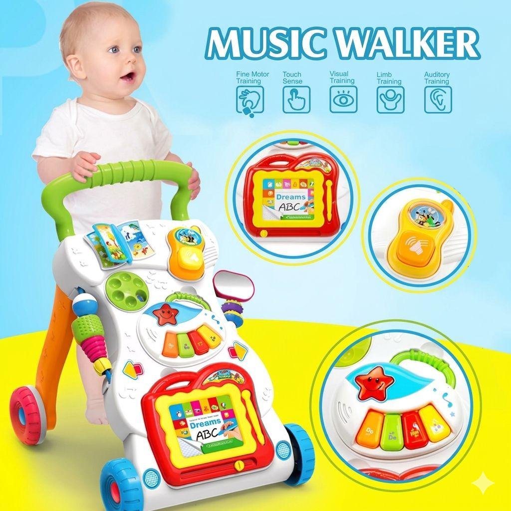 The walker is packed with educational features, including a detachable musical piano, a removable magnetic drawing board for budding artists, and a toy telephone handset. Every button, gear, and flip-book is designed to stimulate sensory perception and improve hand-eye coordination, making it the perfect all-in-one early childhood development tool.