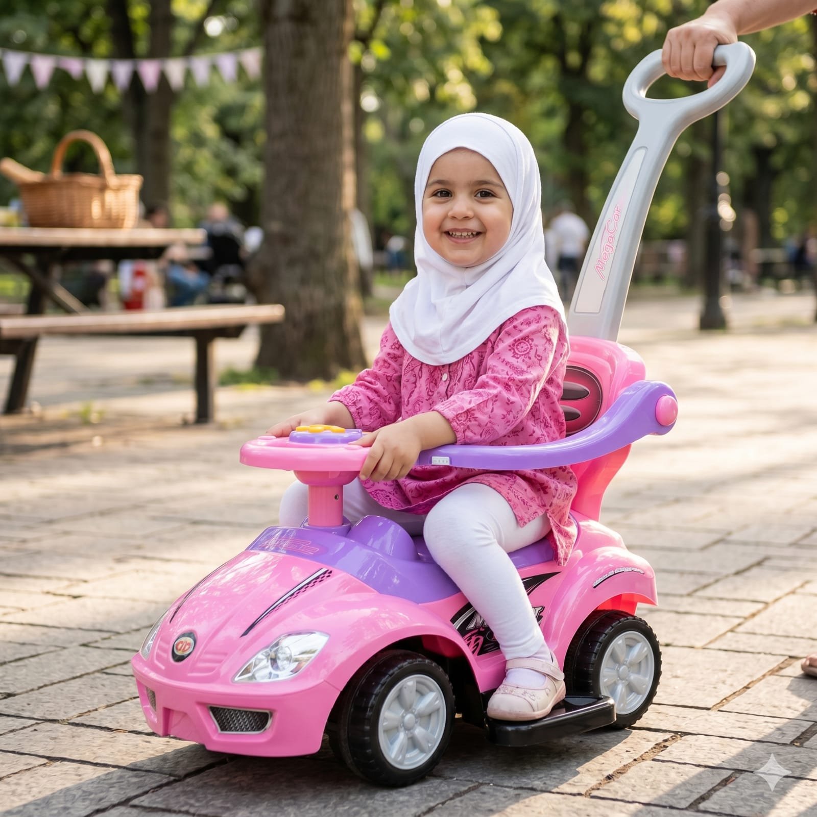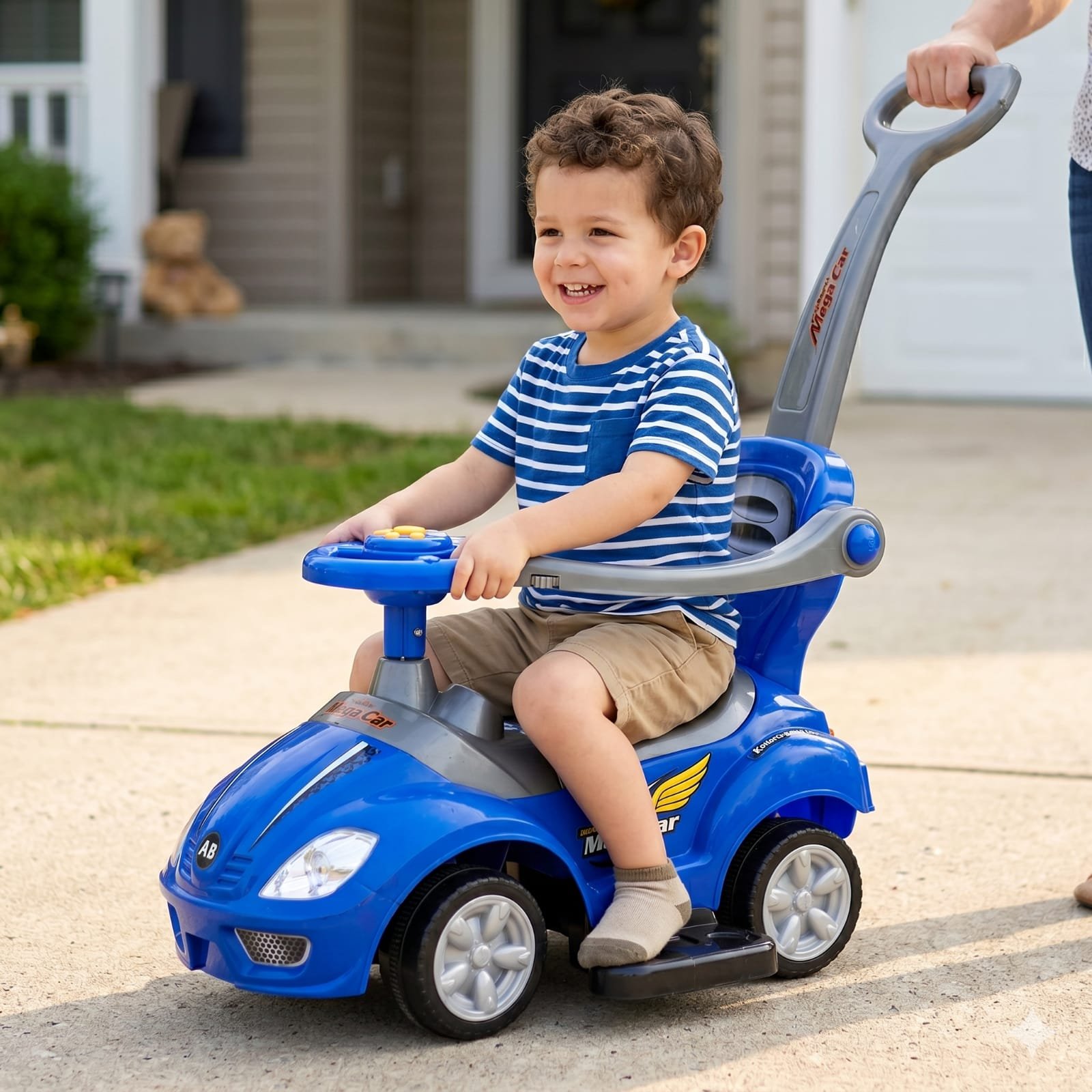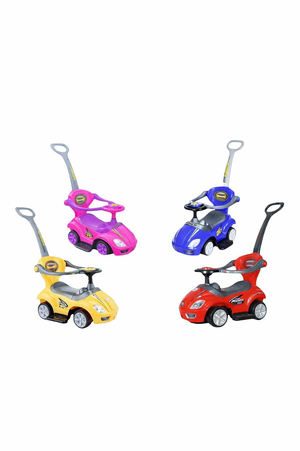 This Deluxe Mega Car 3-in-1 Push Car is a versatile and stylish ride-on designed to grow with your child. Whether they are being pushed by a parent or scooting along on their own, it offers a safe and engaging way to develop motor skills and explore the world.