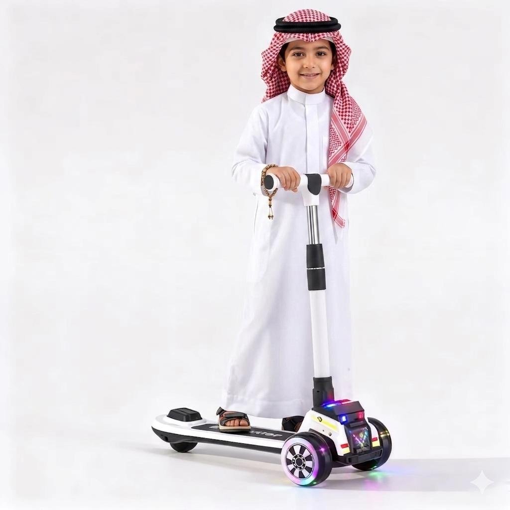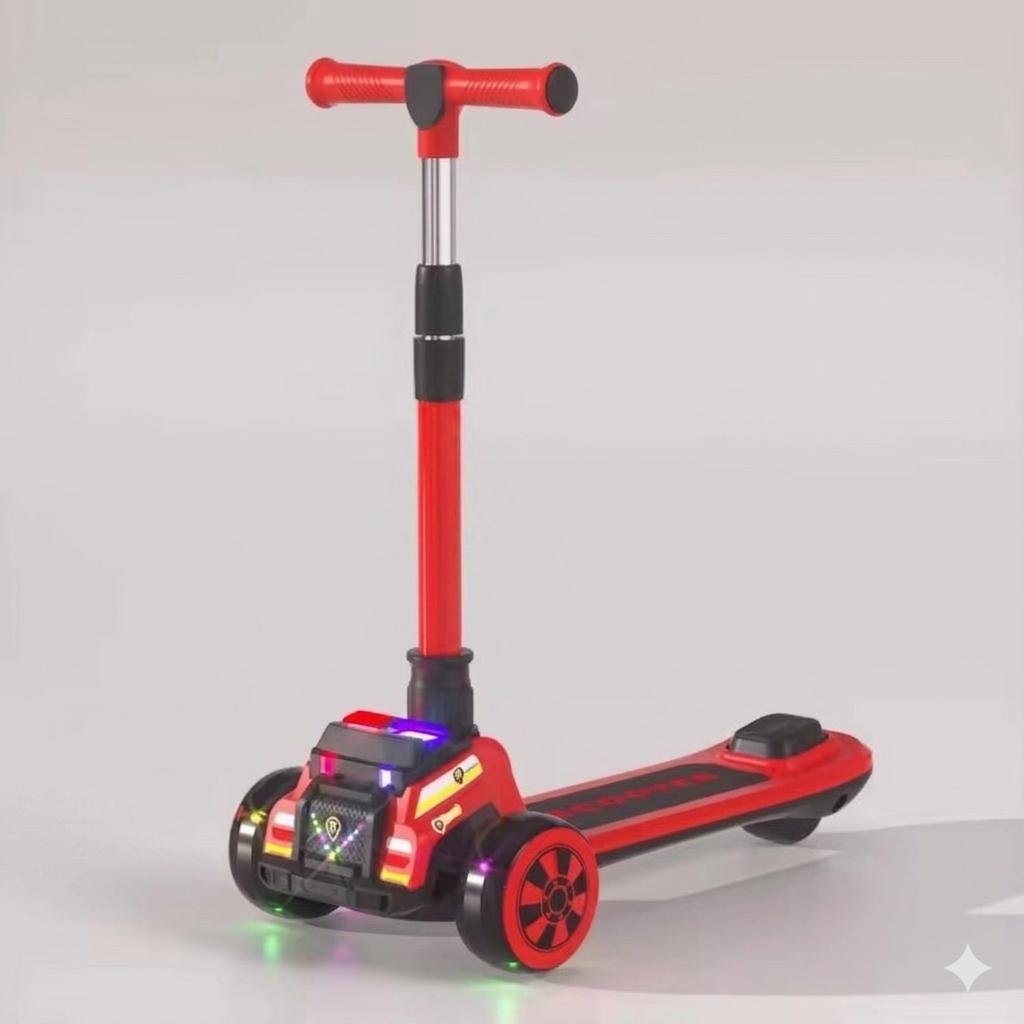 Multicolor LED Light Show: Features flashing “police-style” lights on the front deck and vibrant LEDs built into the wheels, making the scooter highly visible and incredibly fun at night.
